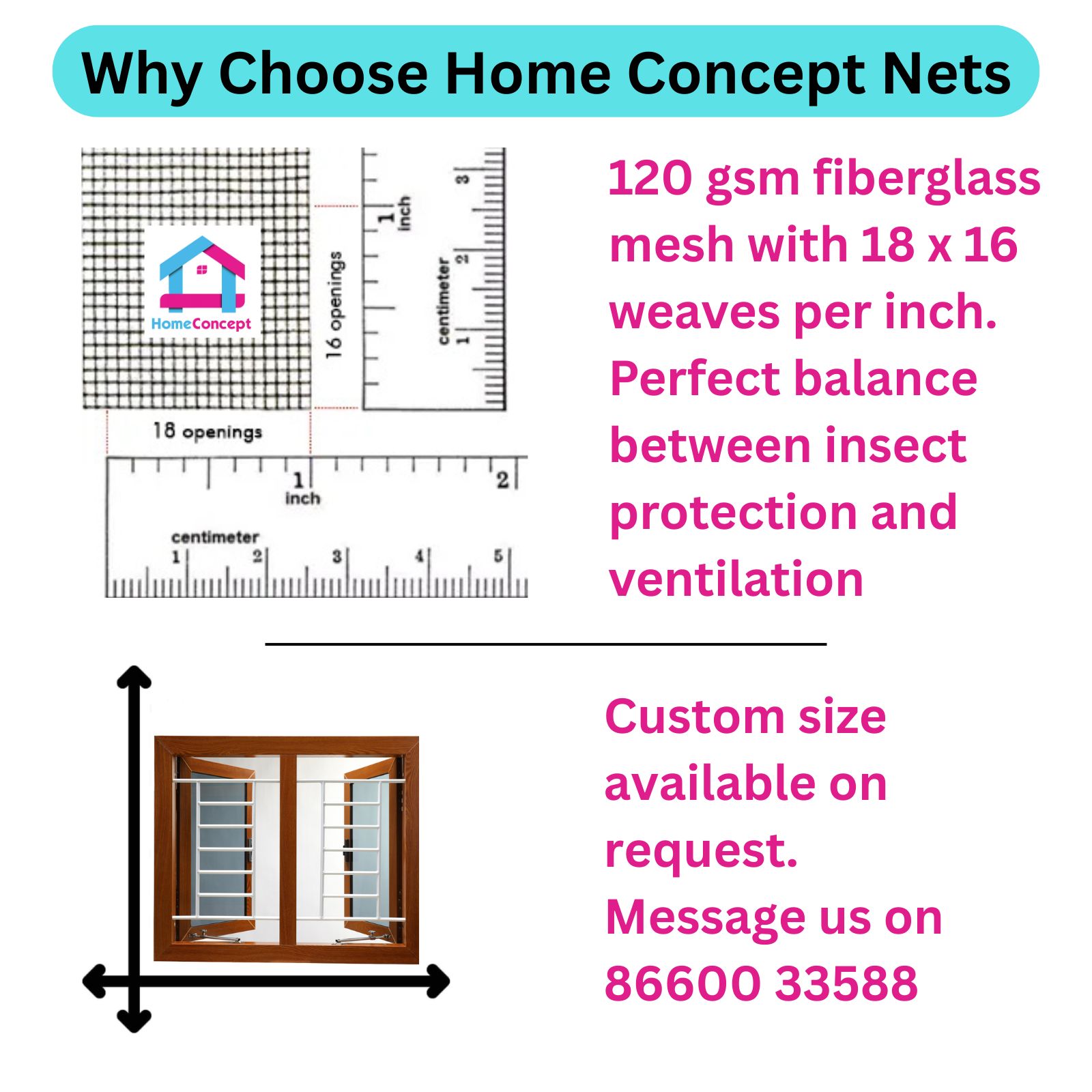 - Measure your window size carefully and select the appropriate mesh size.Â